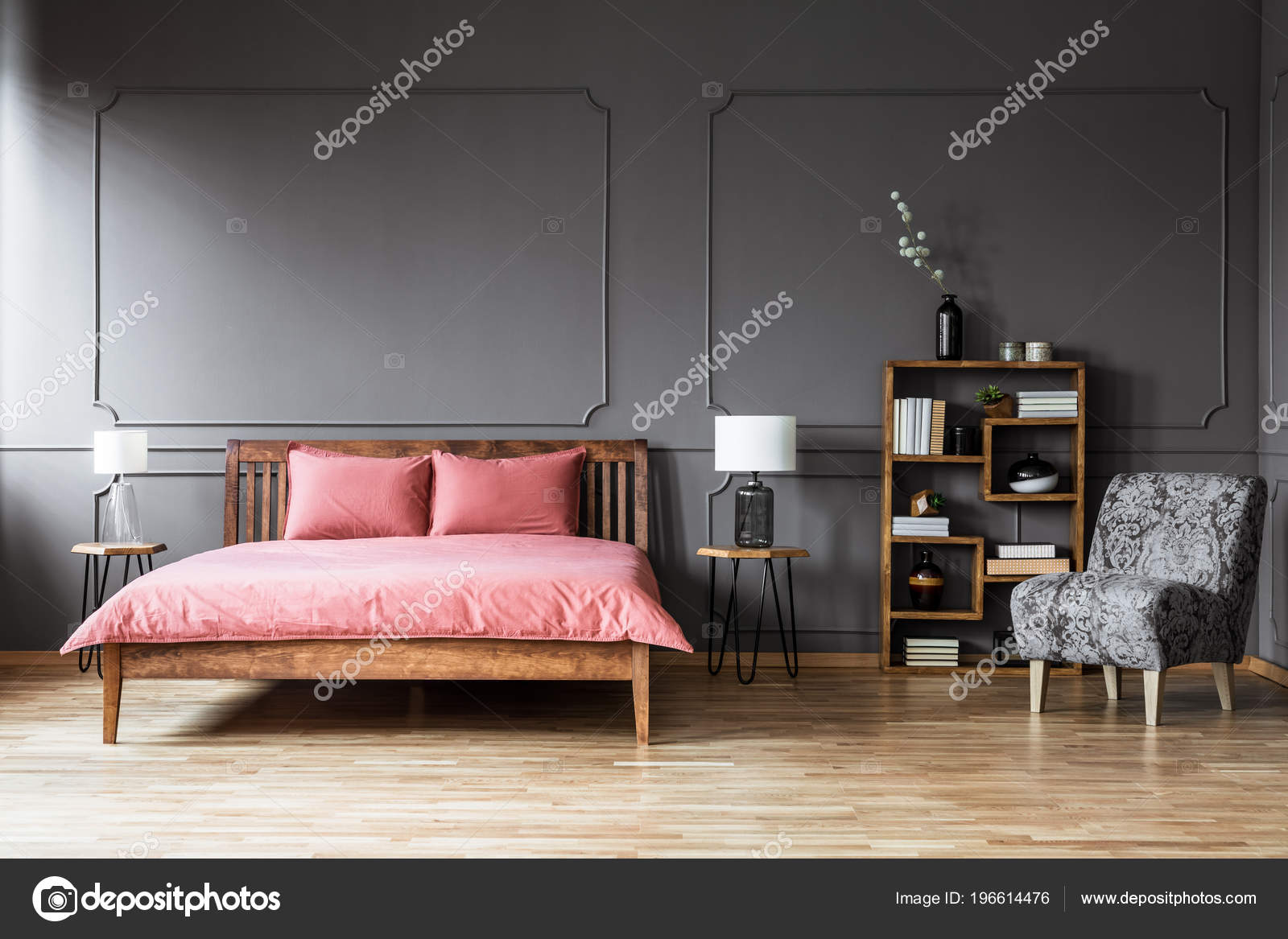 Grau Und Rosa Schlafzimmer Innenraum Stockfoto Und Mehr