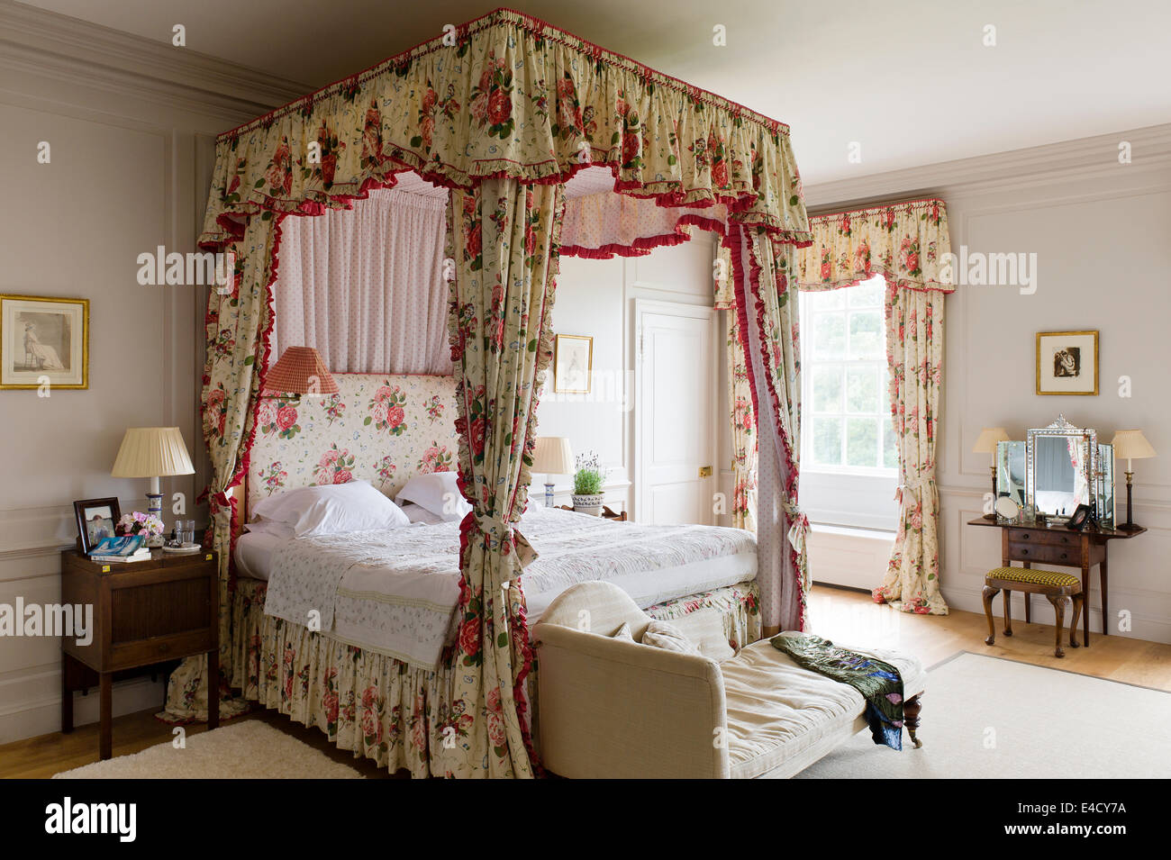 Schlafzimmereinrichtungen Bett Mit Chintz Vorhange Im