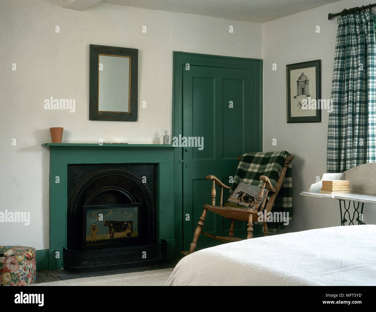 Ein Land Weiss Schlafzimmer Mit Grun Lackierten Kamin