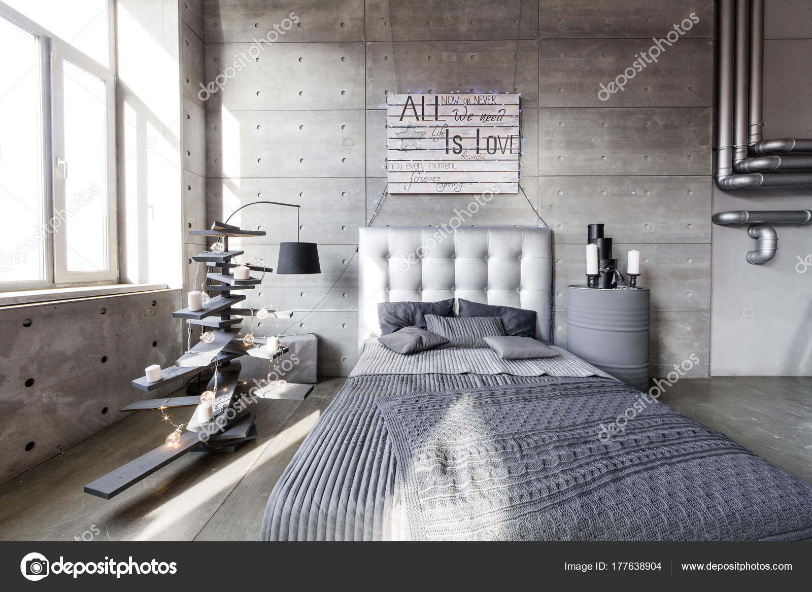Moderne Leere Schlafzimmer Im Loft Stil Mit Grauen Farben