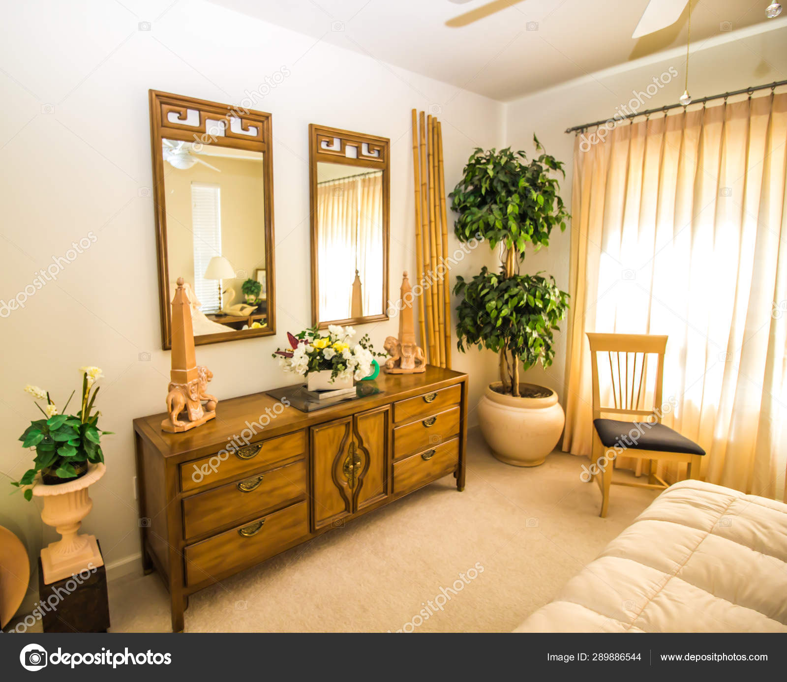 Holz Kommoder An Der Wand In Modern Schlafzimmer Stockfoto
