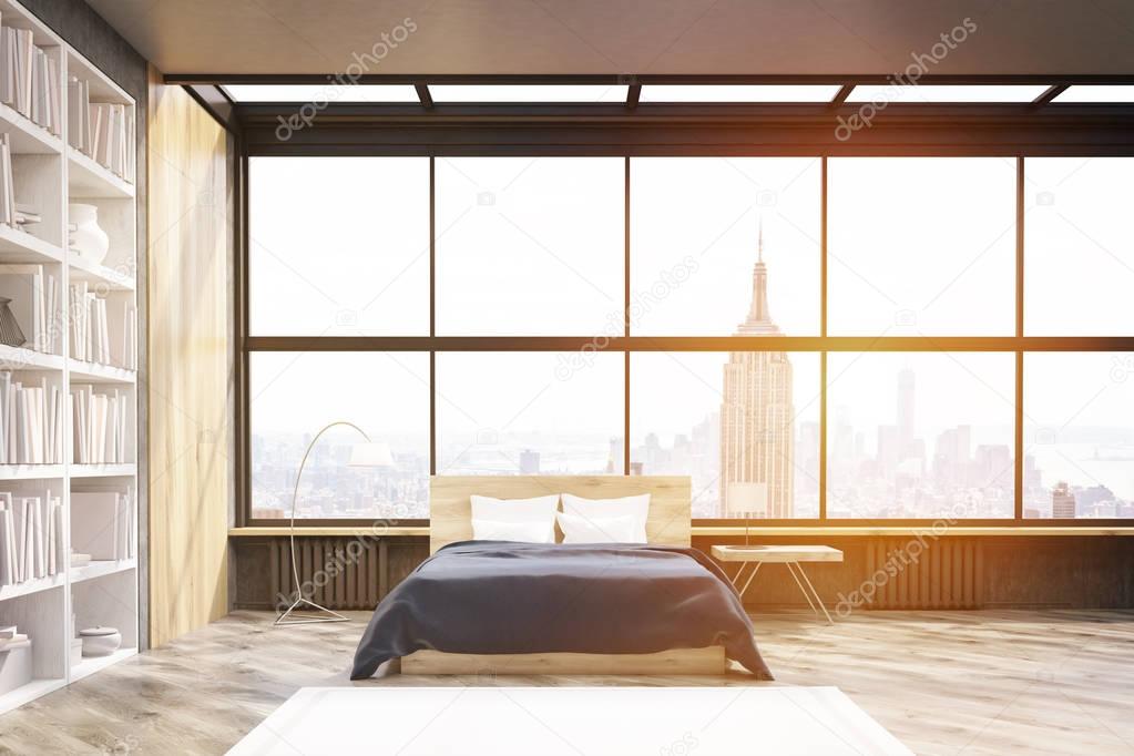 Blick Auf New York Schlafzimmer Mit Poster Und Bucherregal