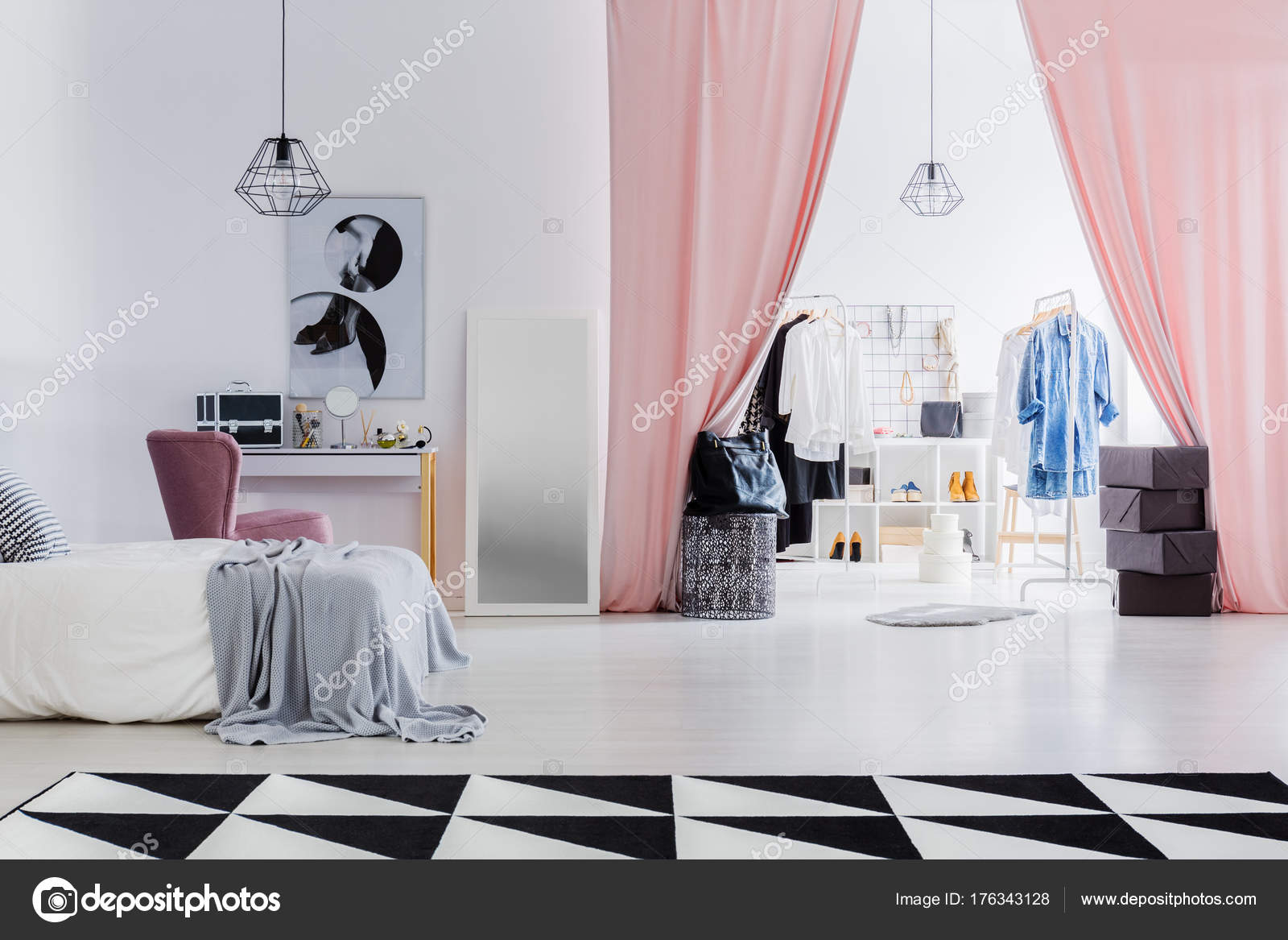 Ankleidezimmer Mit Rosa Gardinen Stockfoto C Photographee