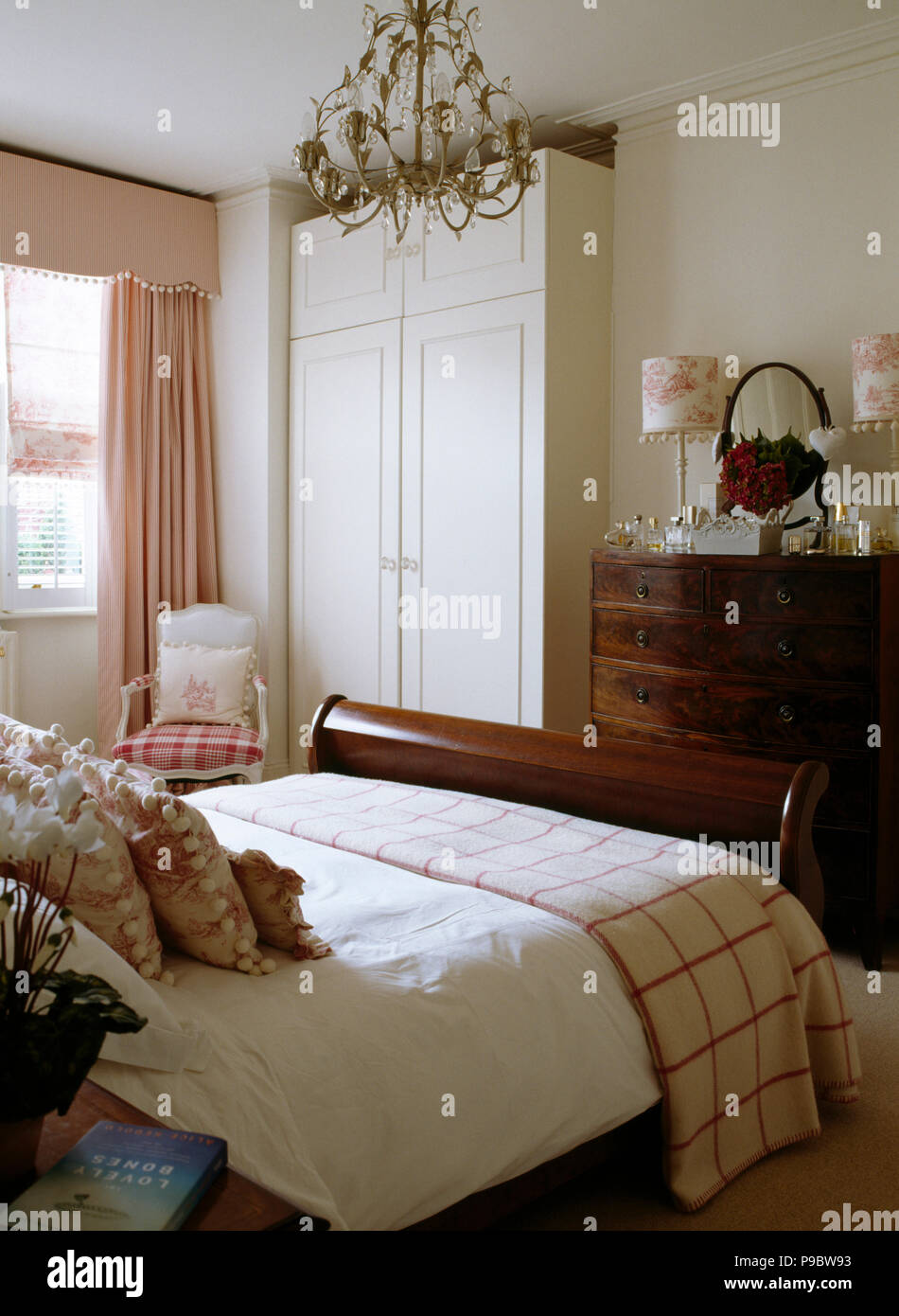 Weisse Bettwasche Und Rot Werfen Auf Antik Mahagoni Bett Im