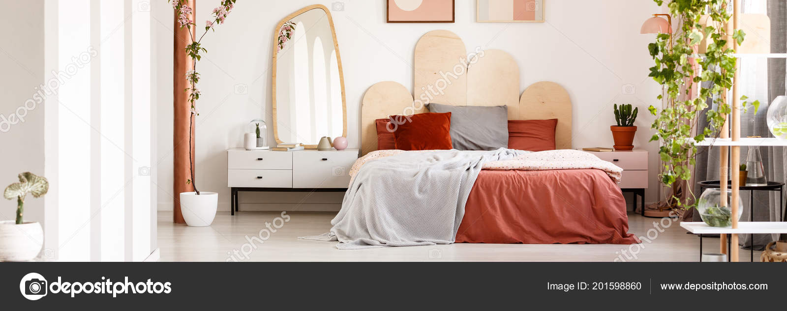 Luxus Minimal Rot Schlafzimmer Mit Vintage Holzwand