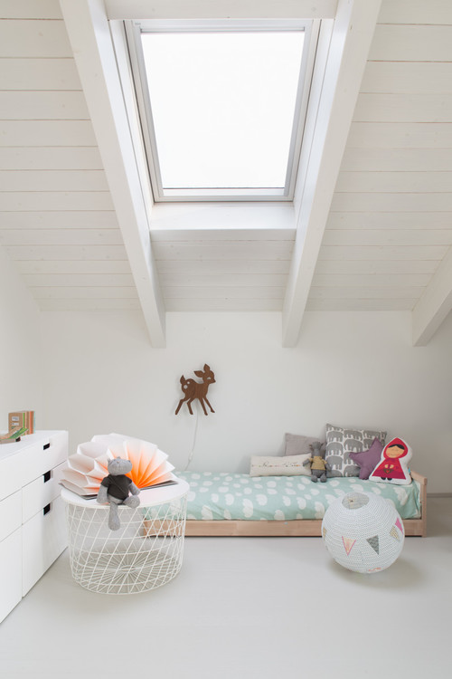 Kinderzimmer ideen schrage wande. Es kann aber auch sein dass sie es etwas moderner mogen. Deshalb sollten die wenigen geraden wande im kinderzimmer fur schrankflachen reserviert werden. Ein einfacher aber wirkungsvoller trick ist es den unteren teil der wand ohne schrage einfach in einer kraftigen farbe zu gestalten wahrend der obere teil heller bzw.
