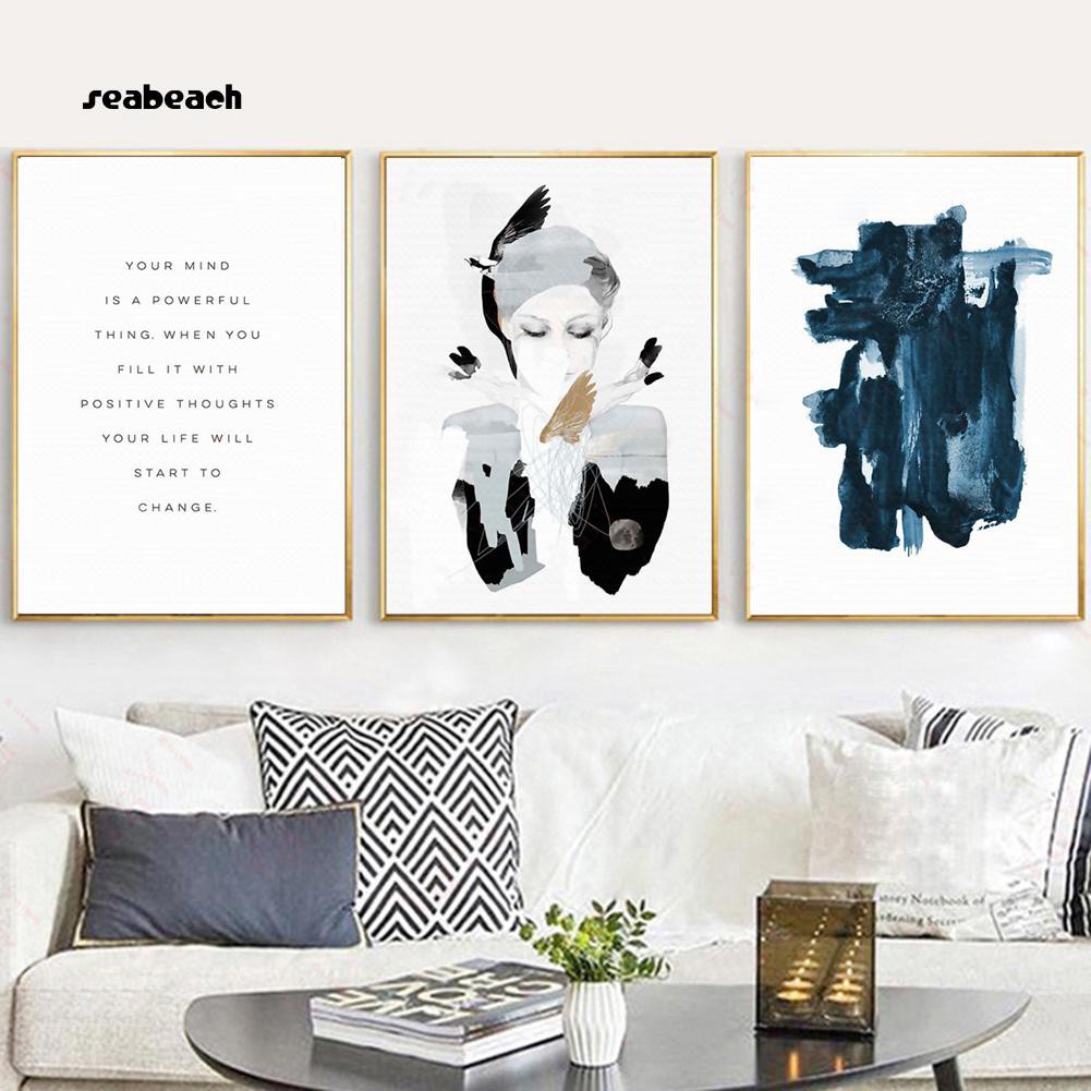 Seabeach Letter Girl Abstract Art Canvas Wall Painting Poster
