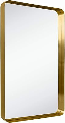 Amazon Com Tehome 20x30 Brushed Gold Metal Framed Bathroom Mirror For Wall In Stainless Steel Rounded Rectangular Bathroom Vanity Mirrors Wall Mounted Everything Else